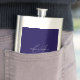 blue and white classic minimalist name customized hip flask