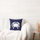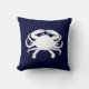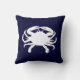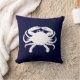 White crab shape against a dark nautical blue. The species is a blue crab. You could always add a personalized text message such as a family name. Or delete the crab on the backside and add your family information and or photo back there. Create your own beach house pillow.