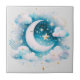 Blue and White Crescent Moon Celestial Boho Modern Tile