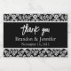 Chic wedding mini sparkling wine or wine labels ready for you to personalize with your own information. Elegant black and white damask pattern decorates the top and bottom of this black horizontal label. Personalize the text for your wedding reception. Great for your wedding reception table or guest favours.
