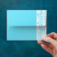 This blue and white damask linen A2 envelope matches the reply card shown below, and is designed to replace the plain white envelopes that come with the cards. Customize it to have your own return address on it. If you require any other matching items, please email niteowlstudio@gmail.com with your request.