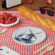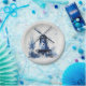 Blue and white Delft style landscape with windmill Paper Plate
