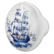 Blue and white Delft style sailing ship in the sea Ceramic Knob
