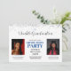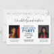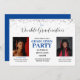 This is a blue and white graduation party invitation with editable colours. The photo can be changed. The colours can be changed to other schools also.