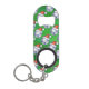 Blue and White Festive Soccer Ball on Green Keychain Bottle Opener