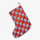 Blue and White Festive Soccer Ball Pattern on Red Small Christmas Stocking