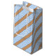Blue and white five stripes pattern with tan small gift bag