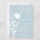A beautifully simple and elegant baby shower invitation with a floral theme against a blue backdrop.