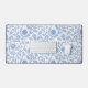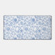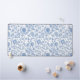 Brighten up your workday with this playful, sophisticated, simple and modern desk mat. Light dusty French country blue boho block print flower and leaf pattern overlays a white background. A great way to accessorize your living space to a new, heightened look.