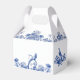 Create beautiful personalized wedding favour boxes that are styled to look like antique china. They have a blue and white floral motif with birds and are ready to be personalized with the bride and groom's names and wedding date.