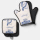 Create a personalized gift with an elegant look. This kitchen pot holder and oven mitt set has blue and white floral illustrations with a bird accent that's styled to look like vintage china dishes. It's ready to be personalized with a name in matching blue lettering.