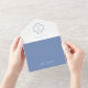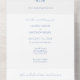 Chic with youthful elegance. This dusty blue and white all-in- one wedding invitation exudes a fresh, modern tone with youthful elegance. The design features blue watercolor accents front and back, a couple monogram, a contemporary set of fonts and a chic blue outside jacket. Perfectly matches items in the full collection.