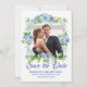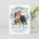 Blue and White Floral Photo Save the Date Card