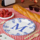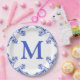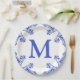 These monogram paper plates have a monochromatic design featuring a blue and white tile design with a single monogram initial in the centre. These plates are perfect for a tea party, birthday party, house warming or bridal shower.
