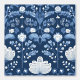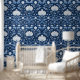 Blue and White Folk Art Pattern Wallpaper