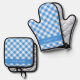 Blue And White Gingham Farmhouse Personalized Oven Mitt & Pot Holder Set