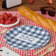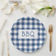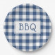 Get ready for your barbecue party with paper plates featuring a classic blue and white buffalo plaid with the letters BBQ in a white rectangle in the centre.
