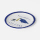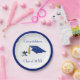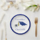 Stylish graduation party paper plates, done in white, with a blue and gold band around the outer edge. Graphics of a blue mortarboard cap and blue and white diploma, decorate the middle of the plate, with custom blue text ready to personalize. Matching graduation party paper napkins are available.