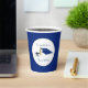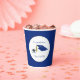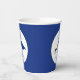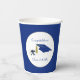 Stylish graduation party paper cups, done in blue, with a white round text area. Graphics of a mortarboard cap and diploma, decorate the circle, with custom blue text ready to personalize. Matching graduation party paper napkins and plates are available.