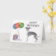 Cute birthday theme design featuring Destei's original cartoon illustration of a cute blue and white colour Italian Greyhound / Iggy breed dog. Next to the dog there are colourful birthday balloons tied on a dog bone and a purple and yellow colour present box. The background has a playful pattern of colourful pastel confetti on a white background. There is also a personalizable text area that now reads: "Happy birthday!".