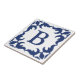 This elegant filigree pattern symmetrically frames your single monogram within a perfect diamond-shaped square, creating a harmonious blend of classic style and refined design. The intricate navy-blue flourishes in each corner add a touch of sophistication, inspired by a blue jade quilt pattern with subtle Moroccan influences.