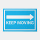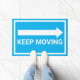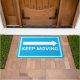 Humouring welcome mat mimicking the "Keep Moving" traffic sign in bright blue and white with a right pointing arrow, directing people to your neighbours house. Perfect for people who don't like visitors. Customizable to point the arrow the other direction.