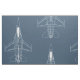 Blue and White Large Scale Top View F-16 on Blue Fabric