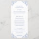 Mid blue and white wedding dinner menu. Edit this 4 course menu with your own meal option wording. Simple yet modern hand drawn leaves and monogram design. © Original drawing and design by Sarah Trett for www.mylittleedenweddings.com exclusively on zazzle.