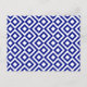 This bold blue and white geometric pattern is an original ornamental design. White meanders angle around dark blue diamonds containing white diamonds. Vibrant blue zigzags provide subtle separation between the winding paths.