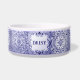 "personalized custom pet name", "dog cat feeding bowl", "blue and white", "authentic mediterranean ceramic tile", "traditional spanish painted painting", "square tiled floral abstract tiles", "vintage antique customized bowl", "personal puppy kitten feed dish", "italian sicilian portuguese style", "stylish folk flower art"