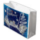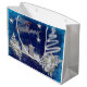 Beautiful gift bag blue and white with roses, gifts and stars, says MerryChristmas! Great for your special holiday gifts!