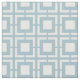 This fabulous mid century inspired fabric features a white square breeze block pattern on a light blue background.