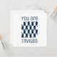 Blue and white mid-century modern invitation