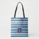 Blue and White Multi Stripe Monogram Tote Bag