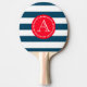 Blue and white striped navy pattern with red circle shape monogram decoration