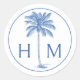 Blue and White Palm Palmetto Tree Monogram Classic Round Sticker