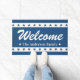 Blue and White Patriotic Stars Custom Name Welcome Doormat