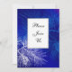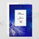 A custom Winter holiday invitation template with an elegant pattern of pine boughs and pinecones in blue and white on an icy background of blues and violet. Click Customize It to change fonts or colours.