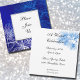 A custom Winter holiday invitation template with an elegant pattern of pine branches and pinecones in blue and white on an icy background of blues and violet. Click Customize It to change fonts or colours.
