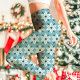 Blue and White Poinsettia Pattern Christmas Leggings