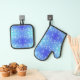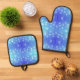 blue and white polka dot pattern on one side oven mitt & pot holder set