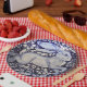 My original, copyrighted rabbit design ceramic dish is reinterpreted as an upscale paper plate.