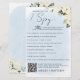 Encourage your guests to help you capture every unforgettable moment with this elegant I Spy Wedding Game sign. Designed with a soft blue watercolor background and delicate white roses, this sign invites friends and family to snap photos and videos of special moments throughout your big day. Guests can simply click the QR code and upload their memories—because love is even sweeter when seen through the eyes of your favourite people.