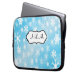 This festive blue and white snowflakes laptop sleeve has a text box for you to customize with your own name, initials, business name, or other text. If you need any help customizing, please email niteowlstudio@gmail.com.