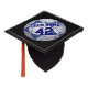 Blue and White Soccer Ball with name Graduation Cap Topper