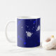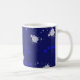 This blue and white fun coffee mug is a perfect gift for anyone as it offers decoration and practical use at home or in the office. Fun splats of white on a rich dark blue background.