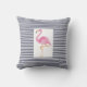 Florida inspired pink flamingo on blue & white stripe background pillow. For the beach house.