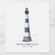 Designer Maura A. © for Sly Coconut Creative Designs. An elegant simple design featuring a one of a kind hand drawn lighthouse in a blue and white colour theme. Fonts are customizable.