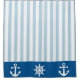 Light blue nautical stripe. A blue band at the bottom features a ship's wheel and two anchors. Would be great for a boy's bathroom.