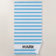A striking striped beach towel with blue and white stripe pattern. Personalize with your name.